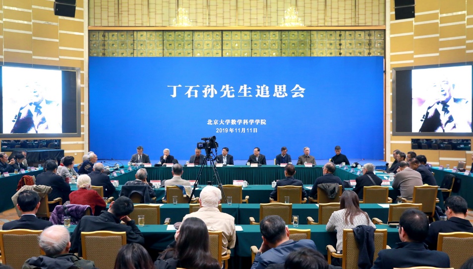 2019年10月12日,我国著名数学家、教育家和社会活动家,深受广大师生爱戴的北京大学原校长、北京大学数学系原主任丁石孙先生因病在北京逝世,享年93岁。11月11日下午,丁石孙先生追思会在北京大学英杰交流中心阳光厅举行。北京大学党委书记邱水平,校长郝平,副校长田刚,中国数学会理事长袁亚湘,北京大学原常务副校长王义遒,原总参三部副部长周仲义,中国科学院数学与系统科学研究院院长席南华,丁石孙先生次子丁干等出席会议。中国科学院院士张恭庆、文兰、张平文、汤涛,以及丁石孙先生生前的同事、好友和北京大学师生共计150余人会聚一堂,共同缅怀丁石孙先生,追思其高尚的道德风范和品格、深刻的治学及育人思想。追思会由北京大学数学科学学院院长陈大岳主持。