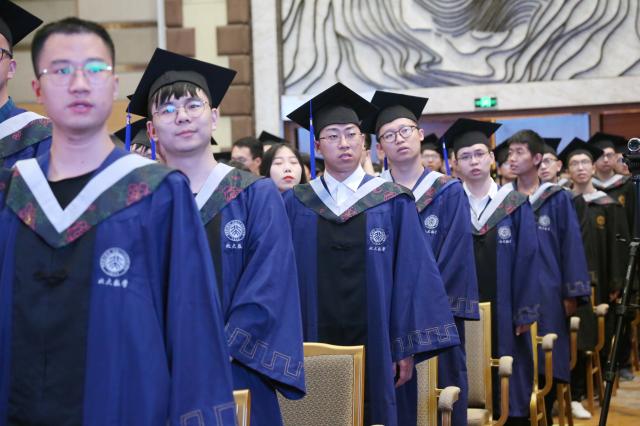 毕业典礼结束后,陈大岳、胡俊、史宇光和李若为毕业生拨穗。“送君千里,终须一别”,同学们与各位老师亲切交谈,老师们勉励同学们铭记北大光荣传统,秉承数院优良作风,在今后的人生新历程中继往开来、阔步向前。