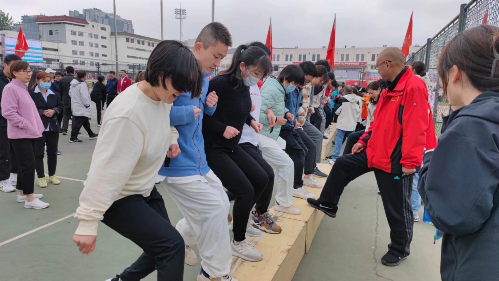 本次比赛,在团体台阶项目中,学院荣获第五名,展现了数学院和数学中心教职工的团队凝聚力和集体荣誉感。此外,学院和中心不少教职工在个人赛事中表现出色,郑春鹏老师在女子D组800米和30米托球跑中均获得第二名,钮凯福老师获得实心球掷远男子C组第二名,沈舜麟老师获得男子A组1500米第六名等。