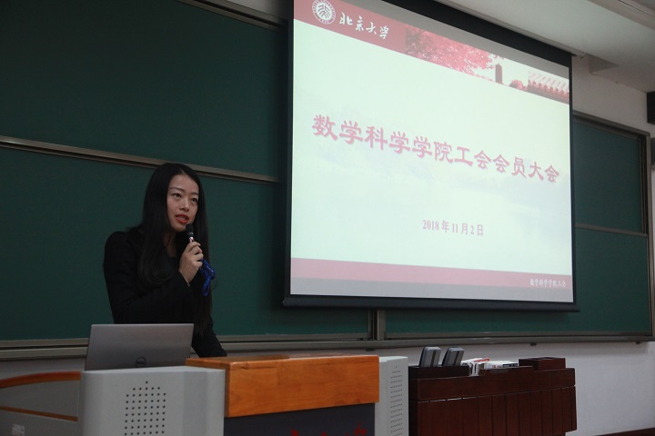 2018年11月2日下午,北京大学数学科学学院工会(含数学中心)会员大会在理教207举行,学院院长陈大岳,学院党委书记胡俊,学院党委副书记、工会主席孙赵君等参加了本次会议,会议由学院党委副书记董子静主持。