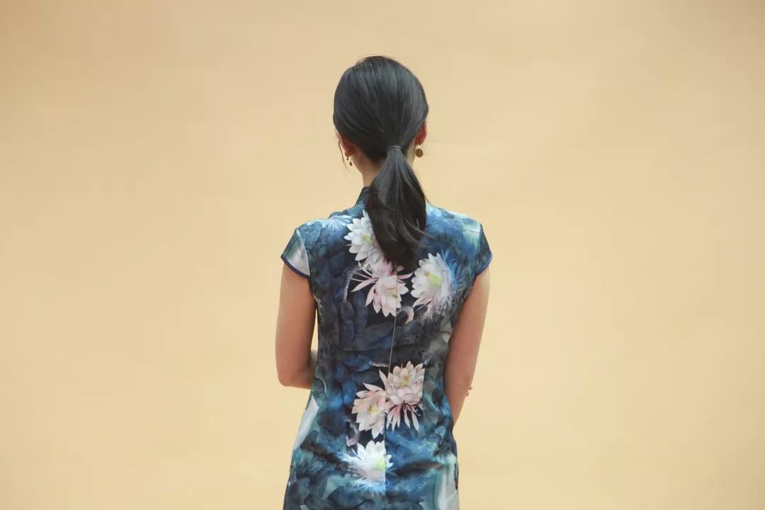 搭建设备、架设幕布、化妆……学院的工会活动室瞬间变成了摄影棚。女士们身着形制多样的旗袍,研讨着旗袍经过多年演进与改良后在襟、领、袖等方面所蕴含的审美情趣,并解读祥云、水纹、玉兰、百合等意象的象征意义,进而领悟“凤穿牡丹”、“繁花似锦”、“紫气东来”、“花开富贵”这些传统服饰纹样所蕴含的美好寓意。
