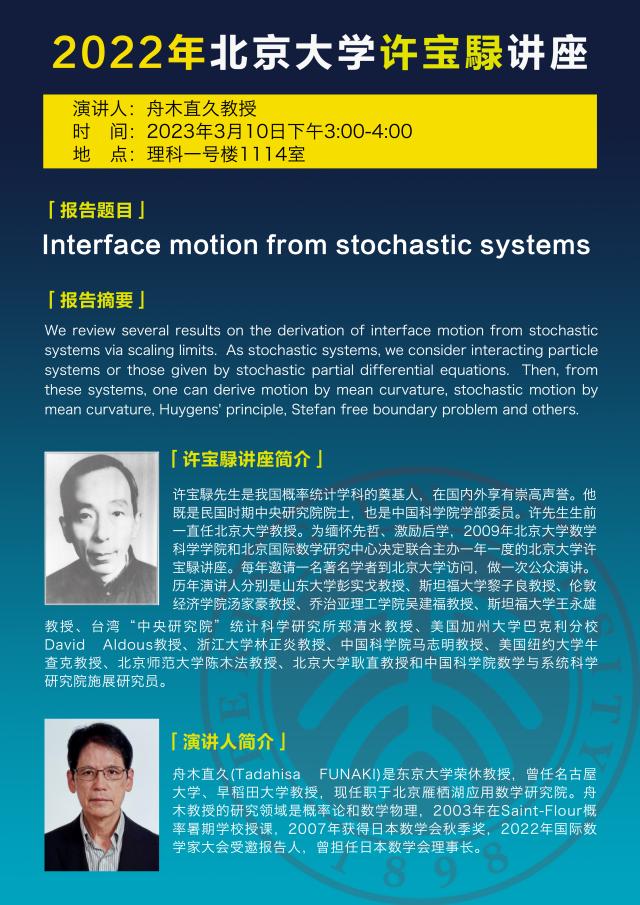2022年北京大学许宝騄讲座——Interface motion from stochastic systems