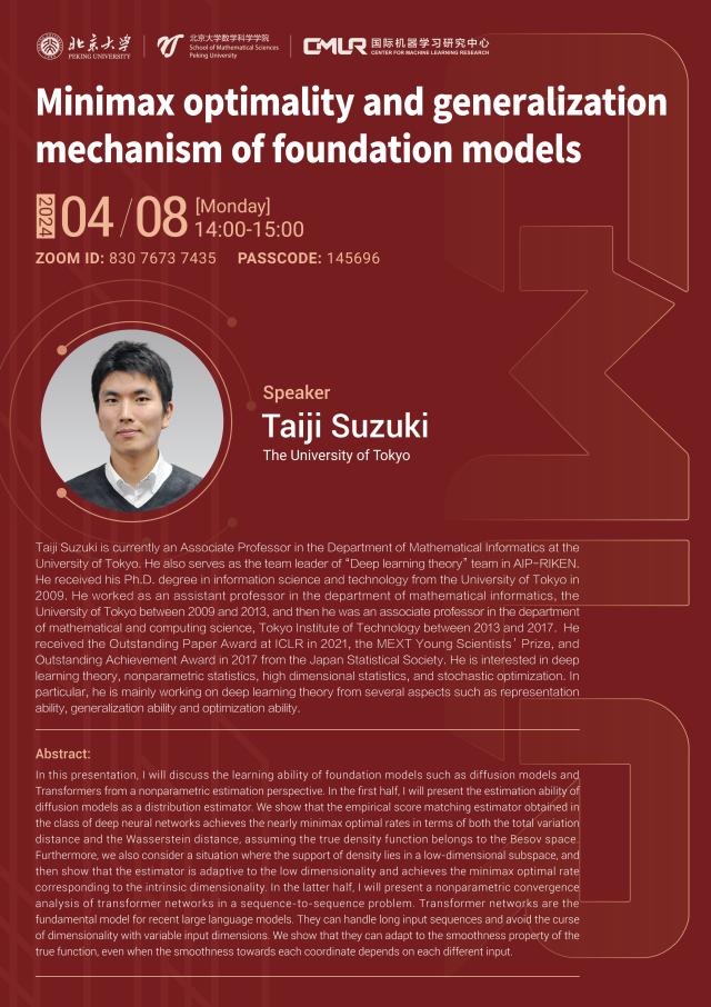 报告人:Taiji Suzuki (The University of Tokyo)