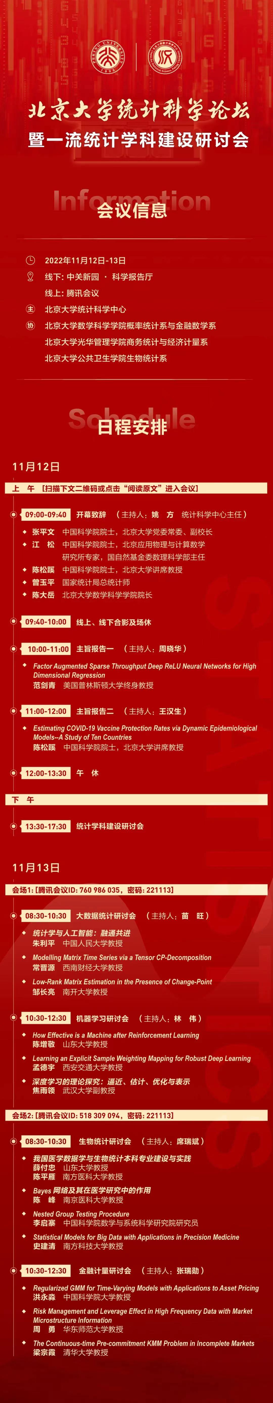 会场1:大数据统计与机器学习研讨会 [腾讯会议ID:760 986 035,密码:221113]