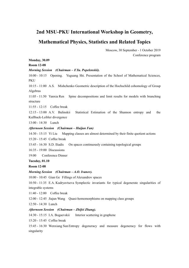 2019年9月30日-10月3日,北京大学数学代表团一行十人访问俄罗斯。北京大学数学学科与莫斯科国立大学等俄罗斯高校及科研机构一直保持着密切的合作关系,今年4月15日,莫斯科大学数学力学系代表团访问北大数院并举行座谈。本次我校代表团出访,将进一步促进与俄罗斯高校及科研机构在数学领域的深层次合作。