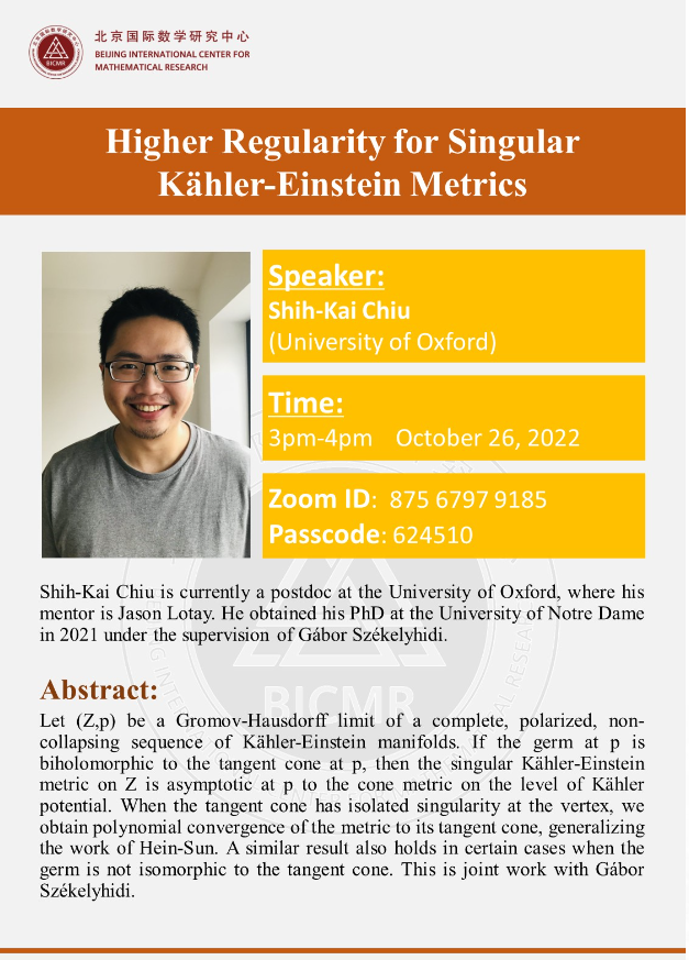 Shih-Kai Chiu is currently a postdoc at the University of Oxford, where his mentor is Jason Lotay. He obtained his PhD at the University of Notre Dame in 2021 under the supervision of Gábor Székelyhidi.