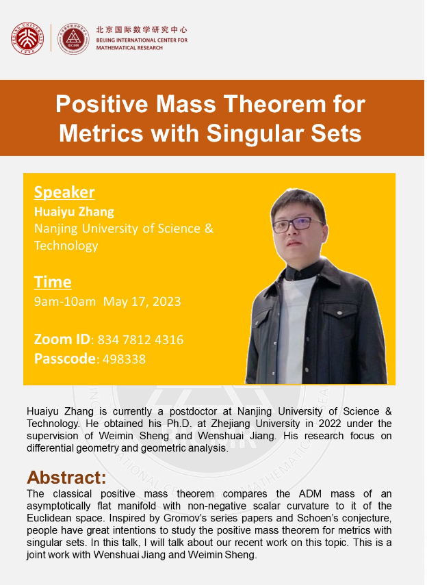 Speaker: Huaiyu Zhang is currently a postdoctor at Nanjing University of Science & Technology. He obtained his Ph.D. at Zhejiang University in 2022 under the supervision of Weimin Sheng and Wenshuai Jiang. His research focus on differential geometry and geometric analysis.