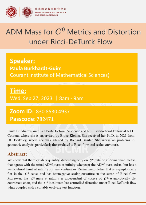 Speaker: Paula Burkhardt-Guim is a Post-Doctoral Associate and NSF Postdoctoral Fellow at NYU Courant, where she is supervised by Bruce Kleiner. She received her Ph.D. in 2021 from UC Berkeley, where she was advised by Richard Bamler. She works on problems in geometric analysis, particularly those related to Ricci flow and scalar curvature.