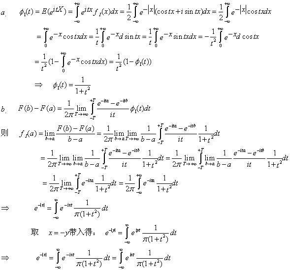 a. 证明特征函数φX(t) = 1/(1+t2).