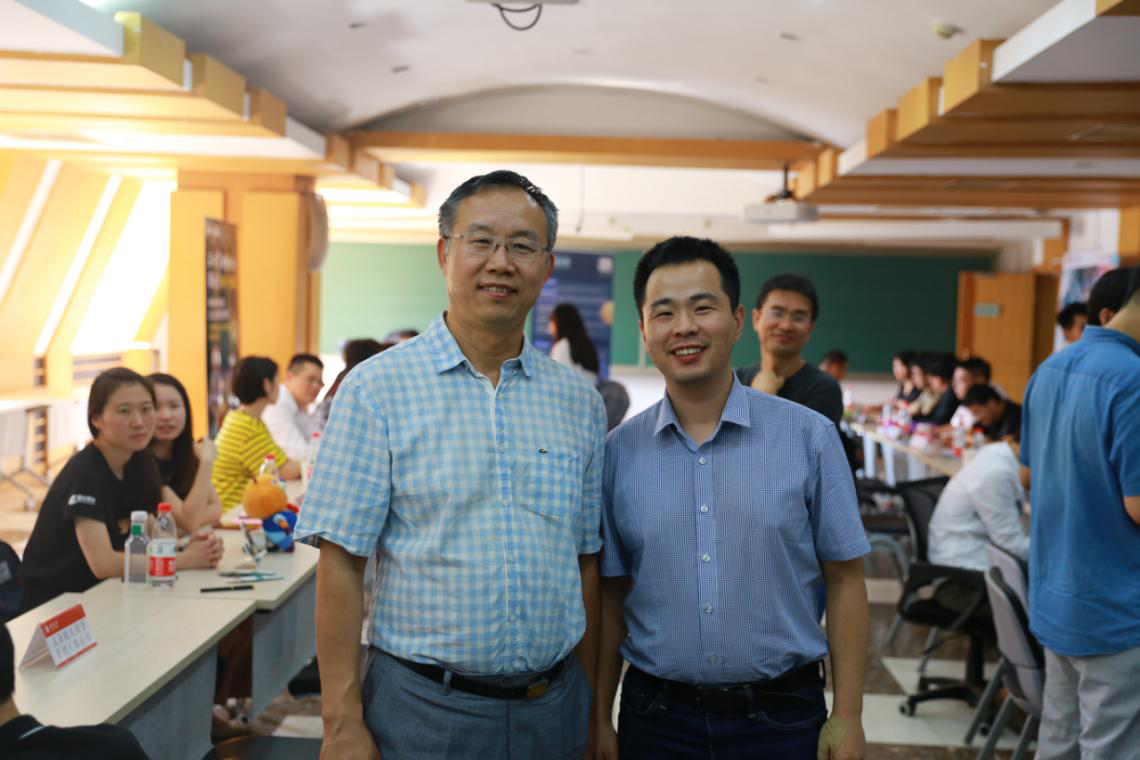 随后进行的双选会环节中,数学科学学院院长、学院校友会理事长陈大岳教授来到现场,他因会议冲突错过宣讲会环节,特在双选会环节与各家企业逐一交流,向院友企业返校招聘表示欢迎,各位院友感动之余纷纷与陈院长合影留念。