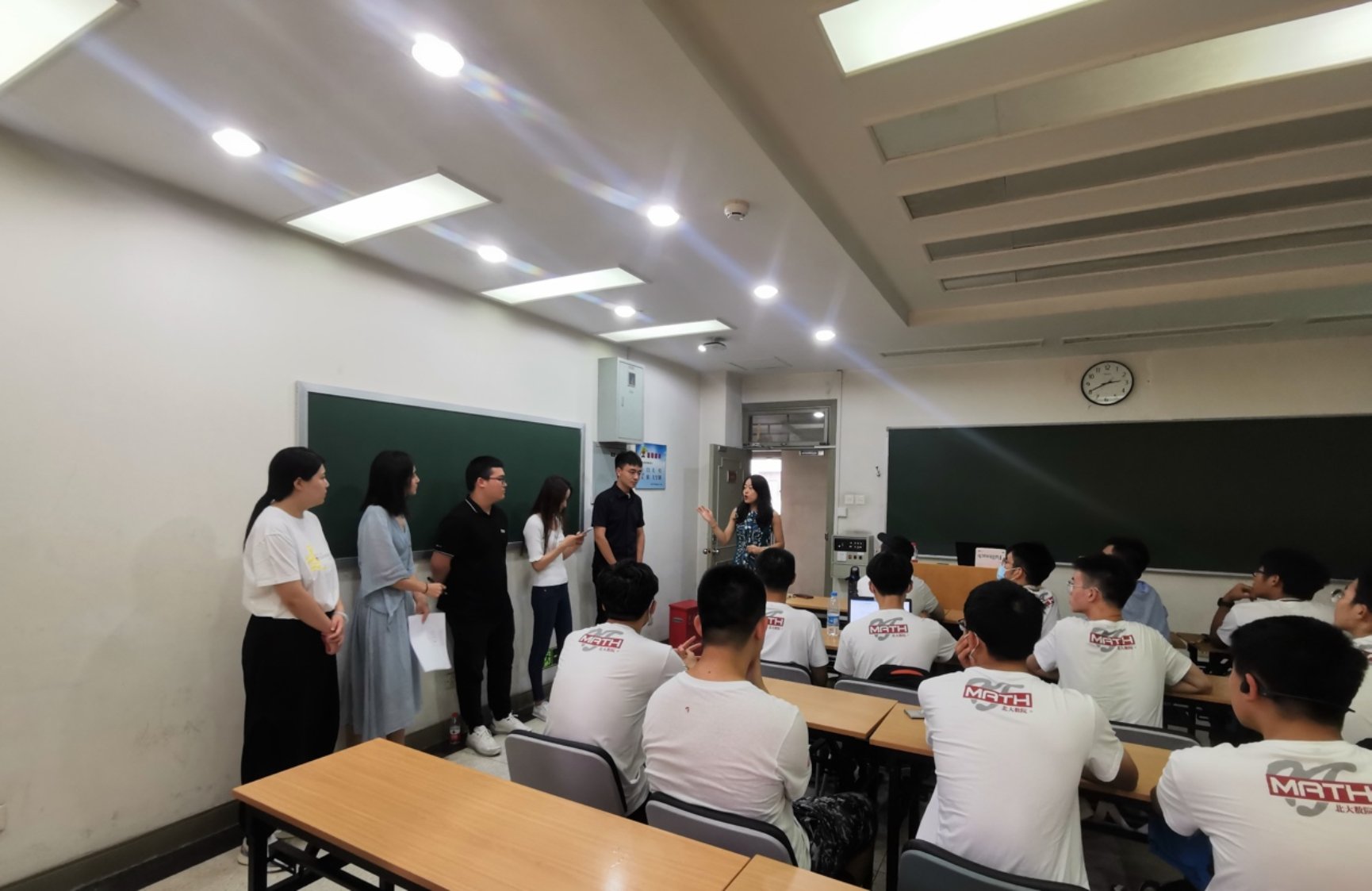2021年9月10日下午2点30分,数学科学学院在理科一号楼1418教室召开2021级新生骨干会,院党委副书记、学生工作办公室主任董子静,学生工作办公室副主任牛贺,团委书记李珣,辅导员张力今、毋泽鹏、李炳萱、牛宝荣,2021级本、硕、博各班级班长、团支书参与此次活动。