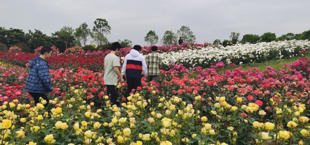 南阳——“中国月季之乡”,全市超过20万人从事月季生产,亩均收入1万元左右,年产值近30亿元,月季在这里是名副其实的“致富花”。月季产业不仅是南阳乡村振兴的助推器,也是农村和城市环境的美化师。南阳世界月季大观园,占地面积1543亩,共有中园、东园、西园三个园区,种植各类月季140万株,囊括南阳所有月季品种,还建设了包括北京园在内的6个外地城市展园。实践团特别在北京园和月季花坡驻足,不同颜色的月季镶嵌分布,美不胜收。