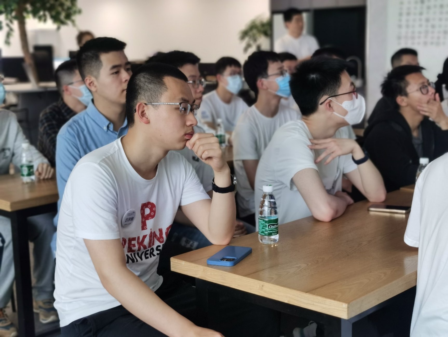 5月4日下午,实践团到达上海通登资产管理有限公司开展座谈交流活动,公司创始人和工作人员共同接待了实践团师生。座谈会上,公司首席运营官向实践团介绍了公司的基本情况及业务范围,科普了股票、期货等金融产品的基本原理和高频交易在期货市场中的强大功能,为同学们上了一堂生动的量化金融课。在茶歇交谈中,目前就职于通登资管的数学科学学院的院友们就量化交易的技术门槛、这种新型技术与传统金融的关系等问题与同学们进行了热烈讨论。同学们了解到,在量化机构工作不仅需要扎实的数学与计算机基础,丰富的想象力与发散的数学思维也是不可或缺的。