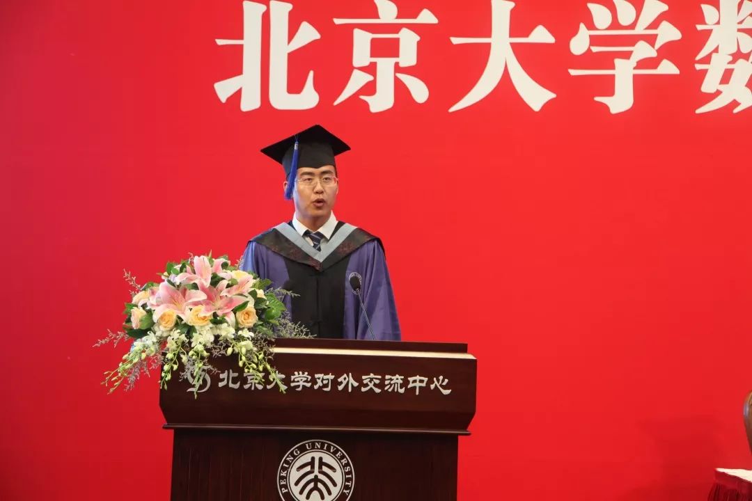 毕业生代表发言环节,2015级本科生夏铭涛、2017级硕士生王瞻、2014级博士生王钰铭向在座师生们分享了自己的北大数院故事,他们带大家一起回忆了在北大学习、科研、生活、成长的点点滴滴,分享了自己与数院、与数学之间的故事,也感谢了北大与学院对自己多年的培养。同时,希望大家在提升个人素养、完善人格的同时,培养强烈的社会责任感和使命感。仰望星空、脚踏实地。珍惜韶华,砥砺前行。