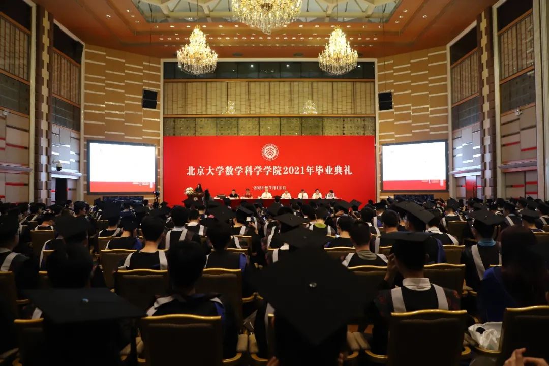 北京大学数学科学学院2021年毕业典礼于7月12日下午13:30在北京大学英杰交流中心阳光厅隆重举行。典礼设置了2个直播分会场,毕业生家人同步观礼。一场细雨如约而至,细细述说数学人的离别情思。