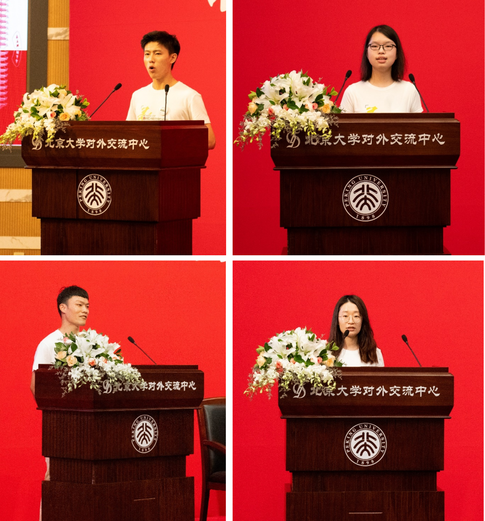 新生代表吴闻道(左上)、付梓垚(右上)、王奔奔(左下)、翟雨瑶(右下)发言