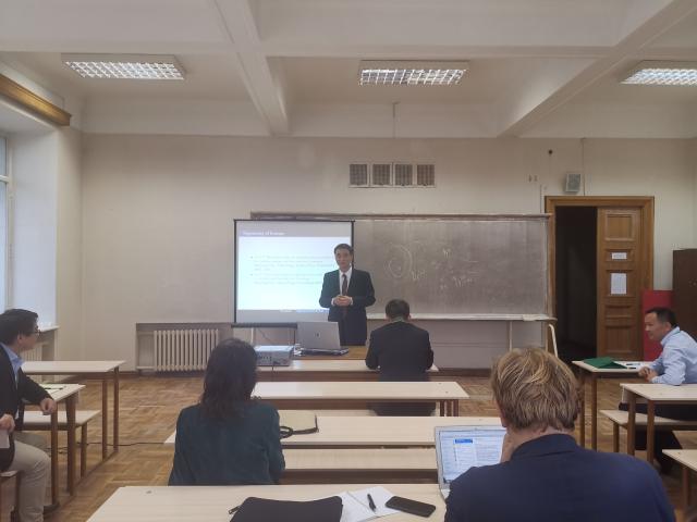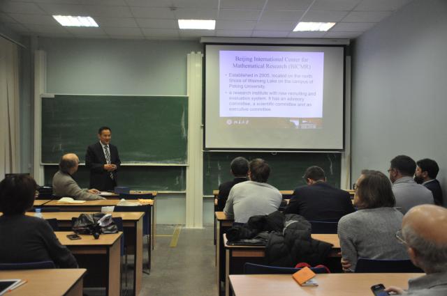 本次出访,代表团除了与俄方高校及科研机构洽谈合作、共研发展外,双方还开展了丰富的学术活动,以期在学术上更多地交流观点。其间,第二届中俄联合数学会议在莫斯科大学举办,范辉军和章志飞分别主持了半天的会议,代表团教师葛剑、刘毅、任艳霞、孙文祥、王家军参与会议并作学术报告。刘毅在圣彼得堡大学向同行们介绍了研究团队及相关研究内容。