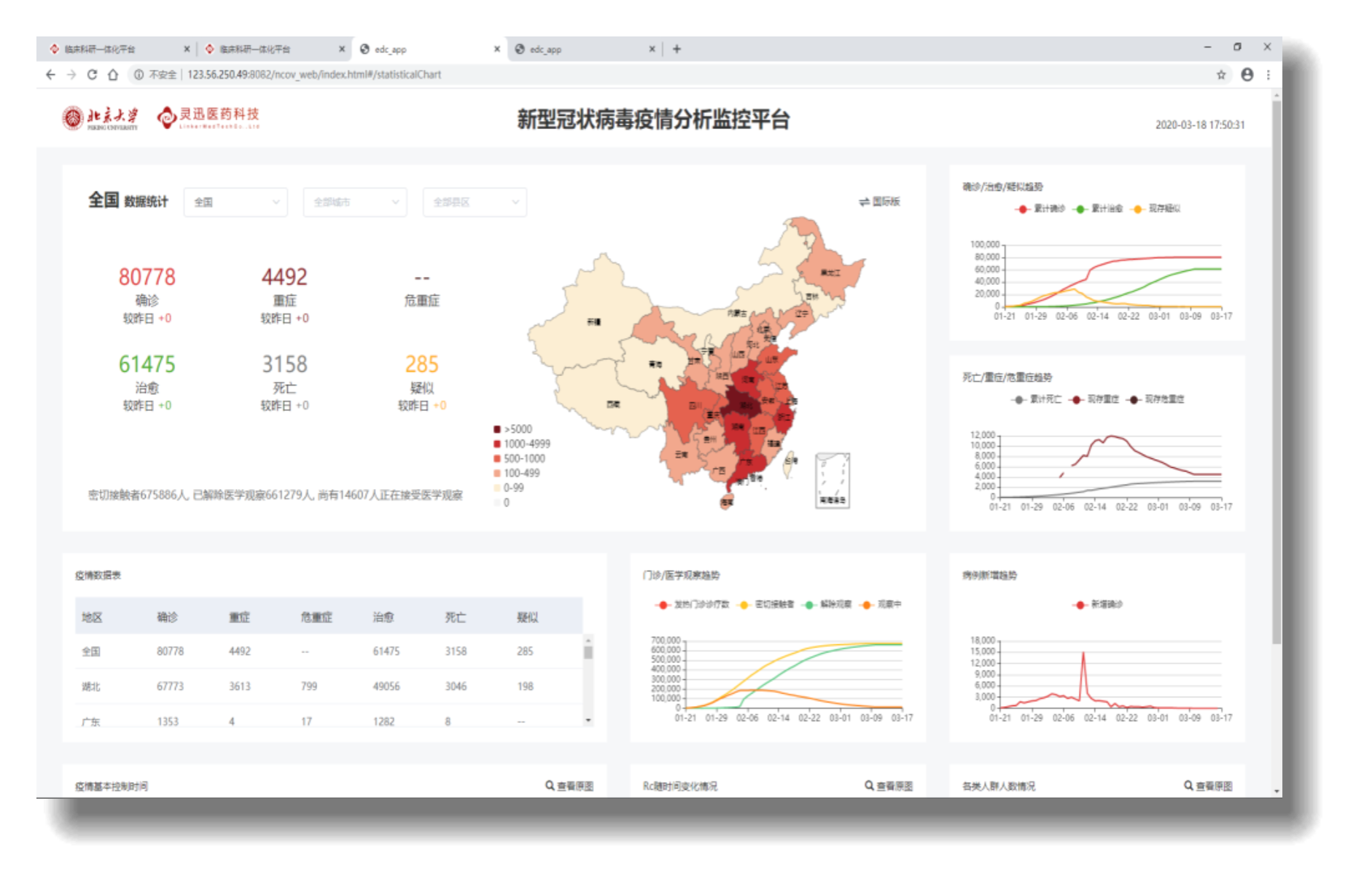 在“浙江大学新型冠状病毒肺炎(COVID-19)应急科研专项”资金资助下,周晓华团队联合灵迅医药科技搭建了新型冠状病毒疫情分析监测平台,并可在线展示。目前,他们已经收集湖北省外上万余名确诊患者信息及部分国外病例信息,主要包括基本人口学特征、临床诊疗经过和流行病学接触史等三方面共计25项信息。目前团队正在推进系统平台与分析算法融合,下一步将融合课题组及全球预测模型,对世界范围疫情关注点进行分类、分区域预测。