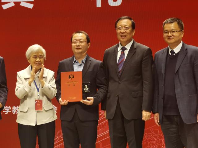 郝平校长、张平文副校长、陈堃銶教授为杨超颁奖