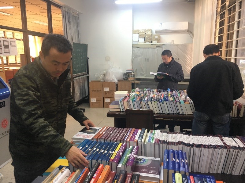 2019年秋季书展现场,图书小组老师们正在参与现场布置
