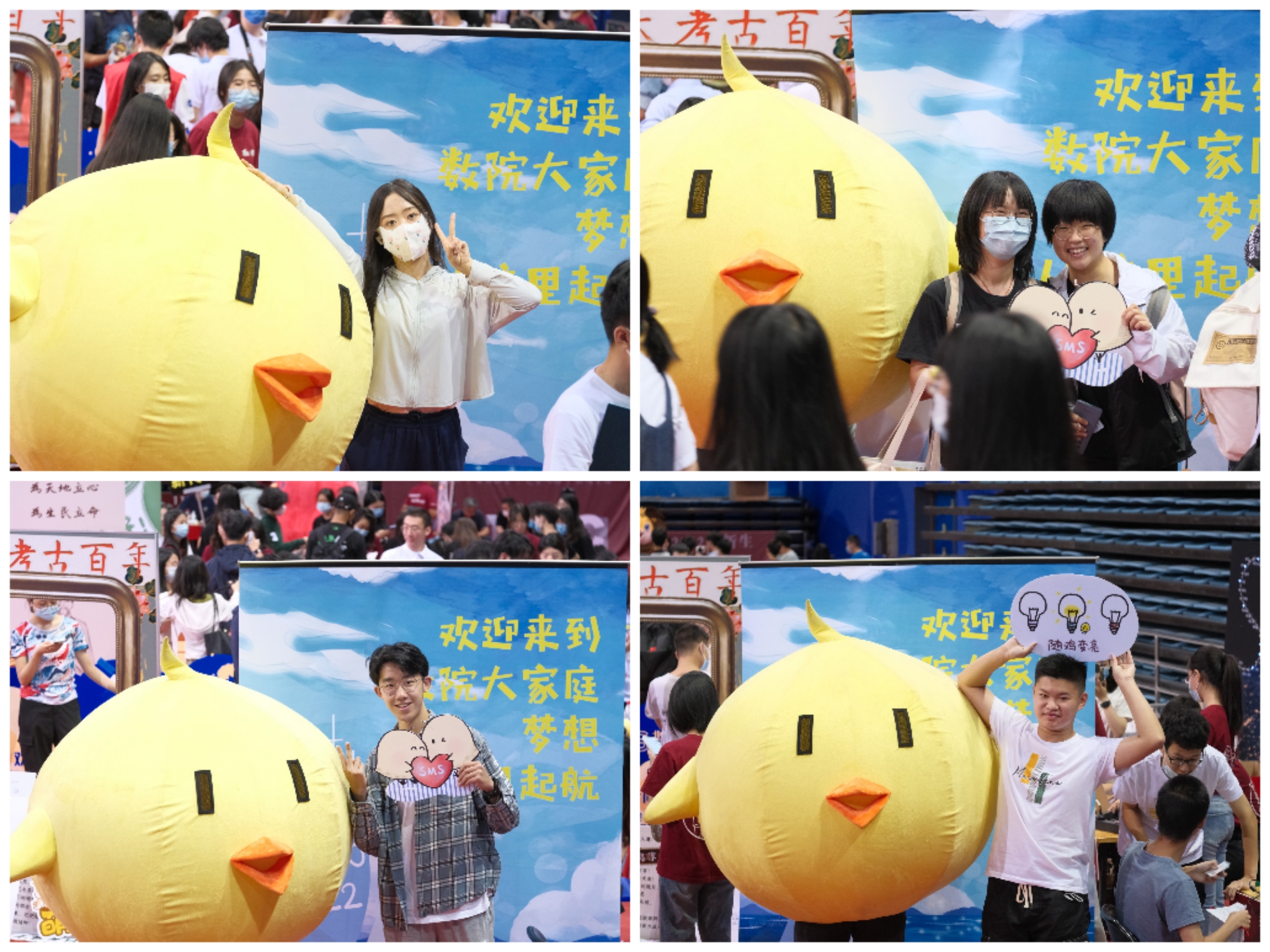 报到日当天,迎新工作人员和志愿者们早早起床,披着朝霞,将物资转运到迎新站点。悬挂院旗,布置合影板,调试设备,摆放吉祥物……志愿者们有条不紊地开展着准备工作,只为让同学们有更为温馨的报到体验。站点随处可见的数院元素,让新生们们感受到了数院的热情与文化,提升学院归属感和自豪感。