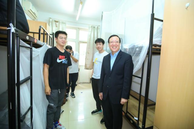 上午十一时许,胡俊和学工办辅导员、班主任、学生带班辅导员前往宿舍,探望完成报到的新同学。胡俊走访了每一间新生宿舍,询问同学住宿情况与家庭情况,与同学亲切攀谈。辅导员、班主任与带班辅导员也现场解答同学们关切的问题。
