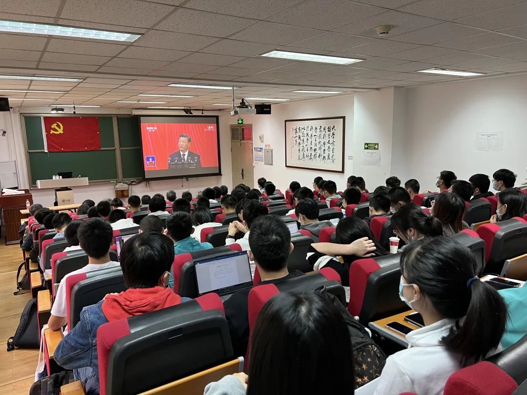 本科生党支部的同学们早早来到学院1560教室,他们中有部分刚转正的同学正在参加党校政治素养提升班的培训,开幕会前,他们热烈讨论并期待着大会召开,会议开始后,同学们聚精会神地聆听总书记的报告。