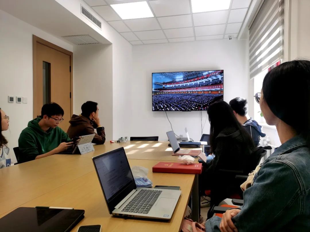 学院的会议室、教室内,都是观看开幕会的师生。全部学生党支部和团校也都组织了集体收看和学习讨论。