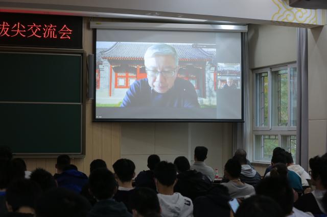 田刚院士致开幕辞。他指出,北大数学拥有丰富的人才培养经验及不断壮大的师资队伍,科研上很多方向也都达到了世界先进水平。拔尖计划交流会为基础数学方向的师生提供了面对面交流的平台,意在让同学们充分了解北大基础数学方向的研究成果与研究前沿,拓宽专业视野,助力大家的方向选择和学业发展。田刚为本科生提出了两点建议:一是在充分感受后,主动依据兴趣选择适合自己的研究方向,并为之锲而不舍地努力;二是多独立思考,在学习前人的研究成果后,多思考其背后的缘由,在此基础上获得独到的见解,这样自我水平才能得到提升。