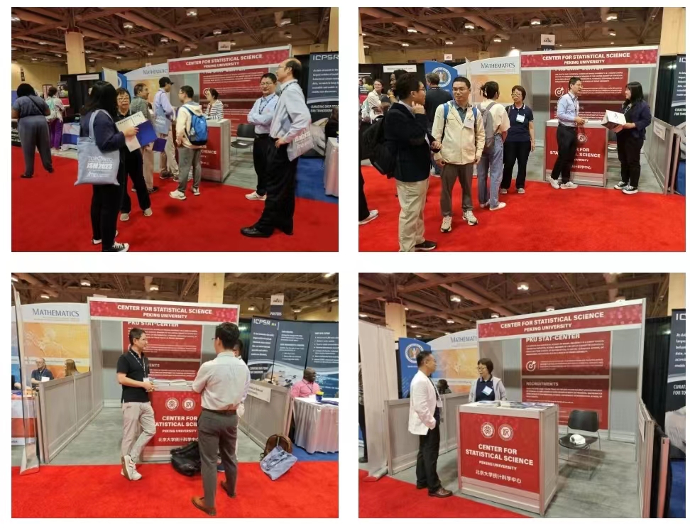 展会期间,多名学者与北大统计学科参会代表进行充分交流,了解国内统计学科发展现状,咨询北大统计学科人才引进情况及政策、博士后及博士项目申请流程等问题。多名华人统计学者表示为祖国统计学科的快速发展感到骄傲,多名华人学生表达希望有机会进入北大继续深造。