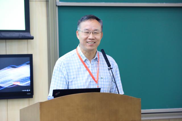 陈大岳教授在开幕式上致辞,欢迎5位校友回家,并表示学院正通过“双一流学科建设”进一步提升数学学科的学术水平,学科的建设不仅需要在校同事的努力工作,也需要海内外同行的大力帮助,“常来北大”就是最好的支持方式。论坛创立与“基础数学拔尖人才培养计划”密切相关,目的是为学有余力的同学提供挑战的机会,增进与优秀学长间的彼此了解。陈大岳指出,20年前,田刚教授在北大举办“数学特别讲座”,如今的“青年学者论坛”就是一种很好的传承,都是为青年研究者提供交流学习的平台。刘小博教授在致辞中简要回顾了数学中心的发展历程,并对中心近年的研究生培养和人才引进情况进行了介绍,并表示衷心地欢迎海外的数学人才前来交流。
