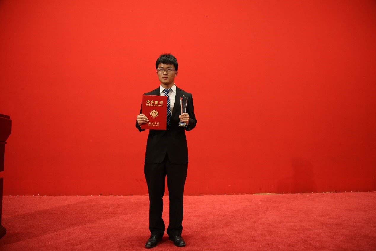 2012级本科生,中共党员,北京大学2015年度人物,2015年国家奖学金、唐立新奖学金和北京大学三好学生获得者,曾获得2013、2014年美国数学建模比赛Meritorious奖,2014年北京大学创新奖,2013年全国大学生数学竞赛二等奖,物理竞赛一等奖,杨芙清-王阳元院士奖学金等多项荣誉和奖励。