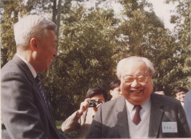1988年北大90周年校庆,丁石孙与费孝通合影