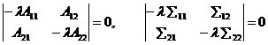 其中A11和å11都是p1阶方阵,A22和å22都是p2阶方阵。样本的典型相关和总体的典型相关分别是下列方程的根